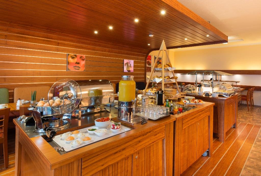 Es stehen verschiedene gastronomische Einrichtungen zur Auswahl, wie ein Nichtraucherrestaurant, ein Café und eine Bar. Täglich werden ein reichhaltiges Frühstücksbuffet und Mittagessen serviert. Auch besondere Speisen sind erhältlich, darunter Diätgerichte. Darüber hinaus stellt die Unterbringung spezielle Verpflegungsangebote bereit.