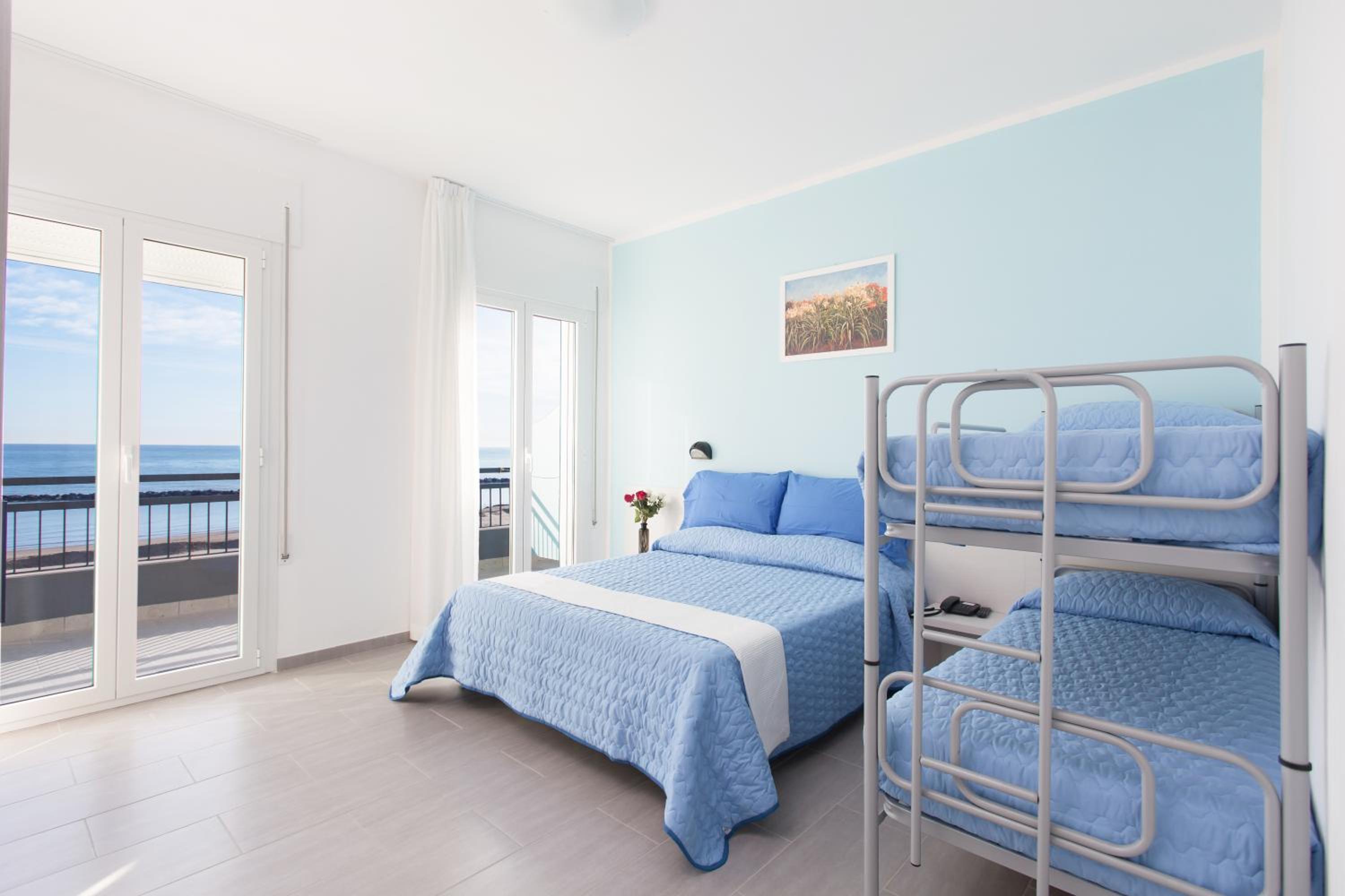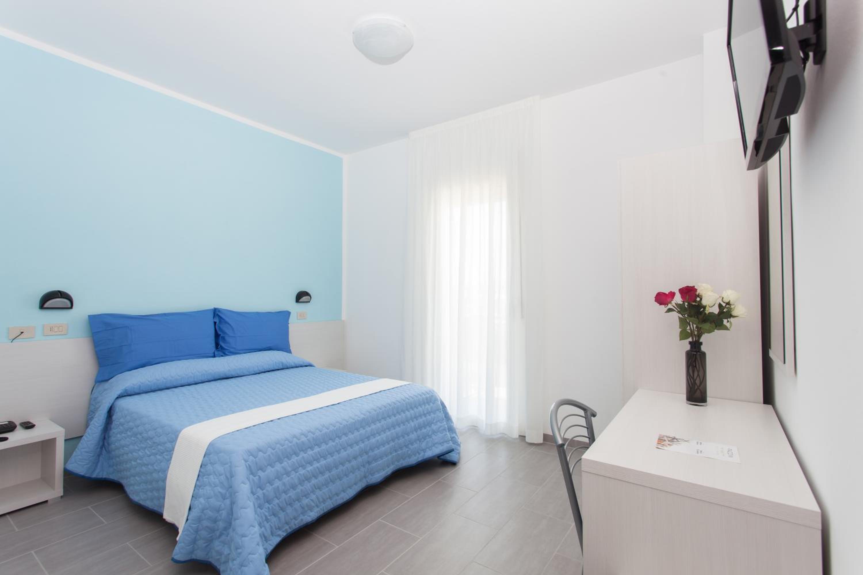 Für angenehmes Raumklima in den Zimmern sorgen eine Klimaanlage und eine Heizung. Auf dem Balkon oder der privaten Terrasse der meisten Zimmer können die Gäste entspannen und den Blick auf das Meer genießen. Die Zimmer verfügen über ein Queensize-Bett. Ein Kühlschrank zählt ebenfalls zur Standardeinrichtung. Verschiedene Kommunikations- und Unterhaltungsmöglichkeiten werden durch die komfortable Ausstattung mit einem Telefon, Sat-TV und WiFi gewährleistet. In den Badezimmern gibt es eine Dusche. Das Hotel bietet Familien- und Nichtraucherzimmer.