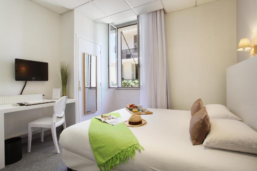 Das Hotel liegt nur ungefähr 3 min von der Croisette und dem Palais des Festivals sowie etwa 2 min vom Bahnhof entfernt. Zu einer Haltestelle der öffentlichen Verkehrsmittel ist es nur ein Katzensprung und zum Strand sind es rund 500 m.