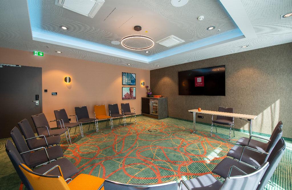 Die offene Lobby- und Bar-Lounge empfängt die Gäste in einem einzigartigen, großzügigen Konzept, um nach einem anstrengenden Tag abzuschalten. Auch draußen im grünen Innenhof, der die Restaurant-Terrasse beherbergt, kann man gut entspannen. Von dort gibt es einen direkten Zugang zum Ballsaal und den Tagungsräumen. Diese Annehmlichkeiten, zusammen mit dem hauseigenen Restaurant und der Bar, dem großen Tagungscenter, dem Fitnessbereich, einer Tiefgarage und nicht zuletzt den komfortablen und luxuriösen Zimmern, machen das Leonardo Royal Hotel Nürnberg zu einer erstklassigen Wahl und zu einer der besten Unterkünfte für Freizeit- und Geschäftsreisende.